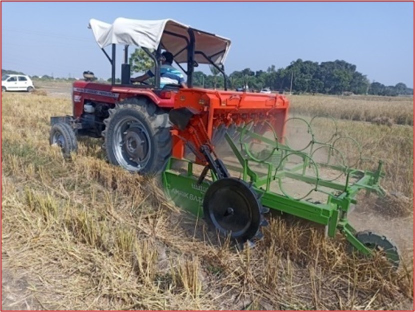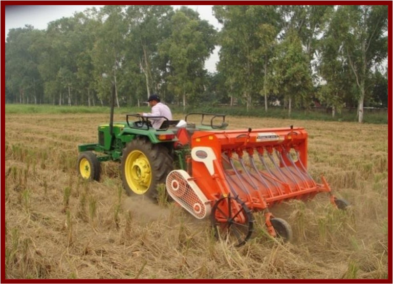 Happy Seeder is used for sowing of wheat directly into the combine-harvested paddy