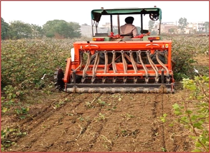 In-situ residue incorporation of cotton stalks and wheat sowing as well as in-situ incorporation of wheat residue with Super Seeder, resulted in higher seed cotton yield, wheat grain yield and improved soil physical parameters. Soil infiltration rate improved from 2.75 mm/h to 3.44 mm/h. Also soil bulk density reduced from 1.58 gm/cm3 to 1.46 g/cm3.