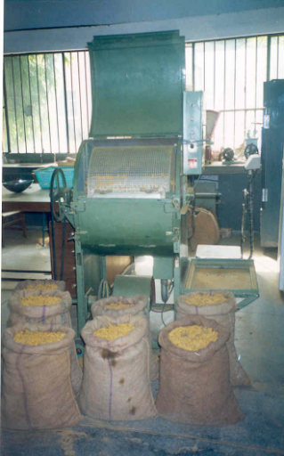 This machine is used for making dal (split and dehusked) from moong beans, black chana and other pulses after providing some pretreatments. The capacity of the machine is 100 kg/hr. The colour sorter can be used for separation of dark coloured grains in pulses.